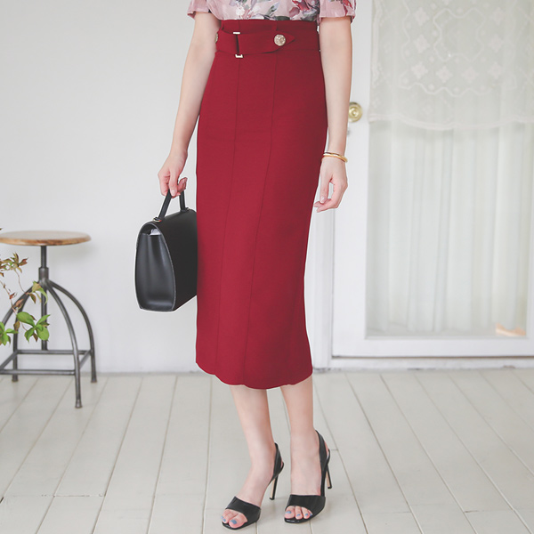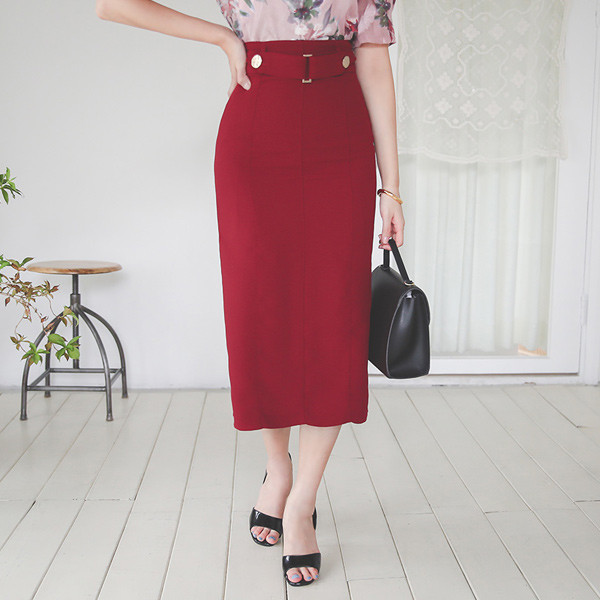 Double Gold Button Back Slit Pencil Skirt