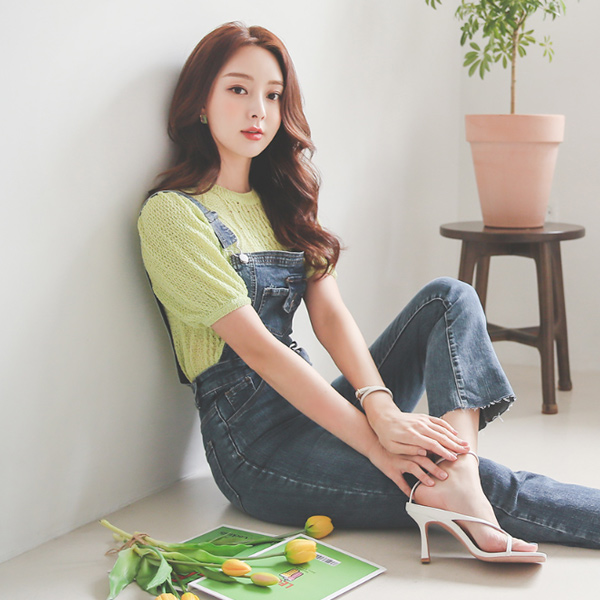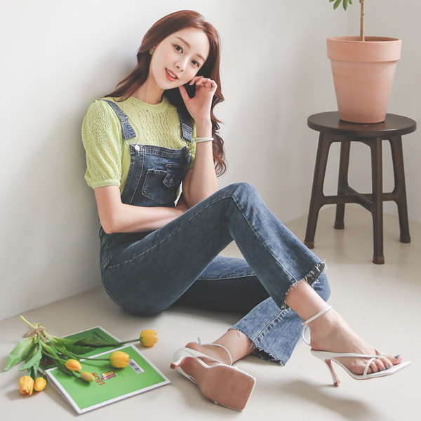 Double Pockets Semi-Boots cut Shoulder strap Denim-Pants