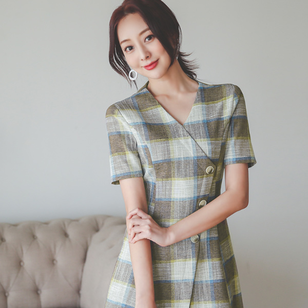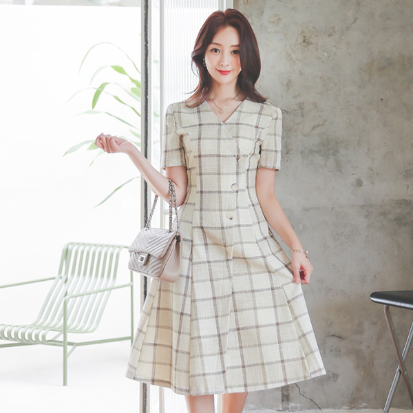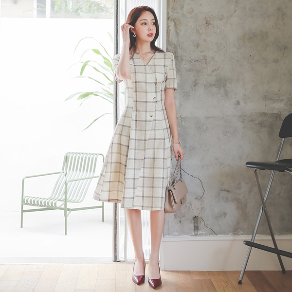 Urban Bokashi Check Button Flared Dress