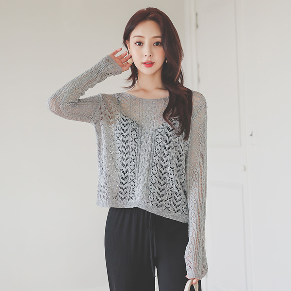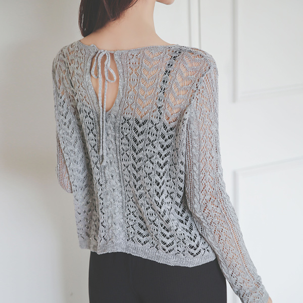 Back Ribbon Punching Diamond Long Sleeve Knit