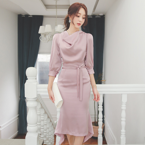 Glam Cowl Neck Skily Unbalance Mermaid Dress