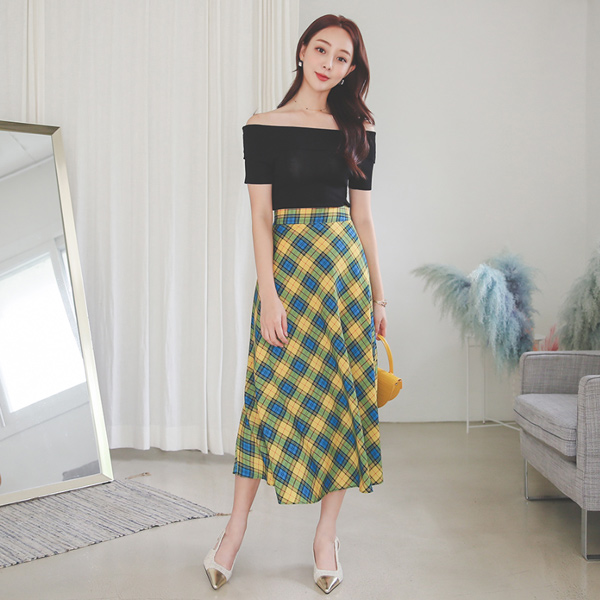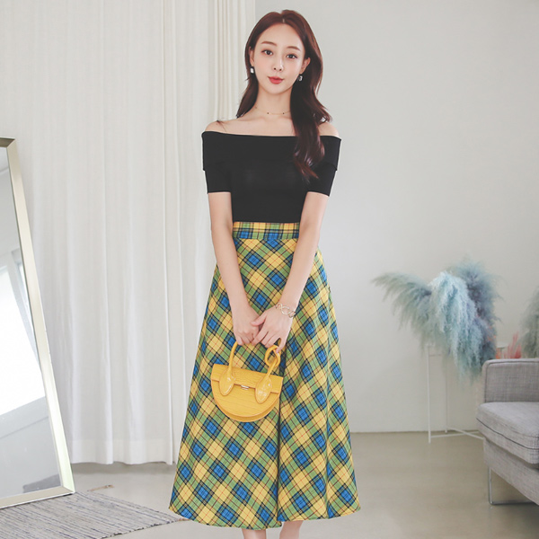 Retro Check Flared Skirt
