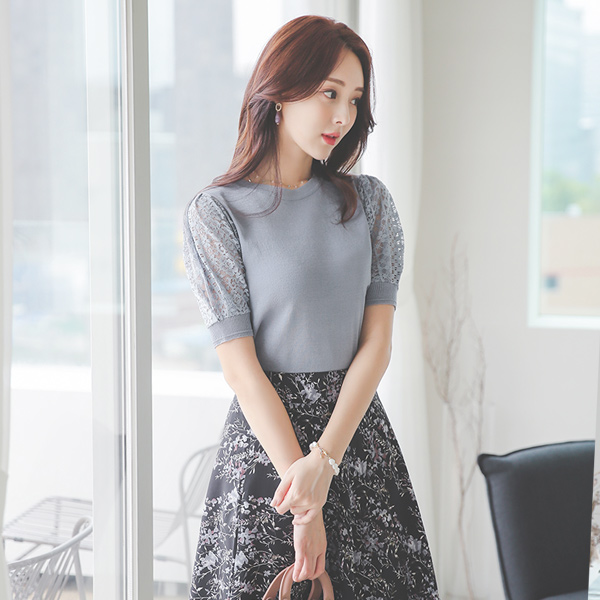 Lace Puff Banding Round Knit