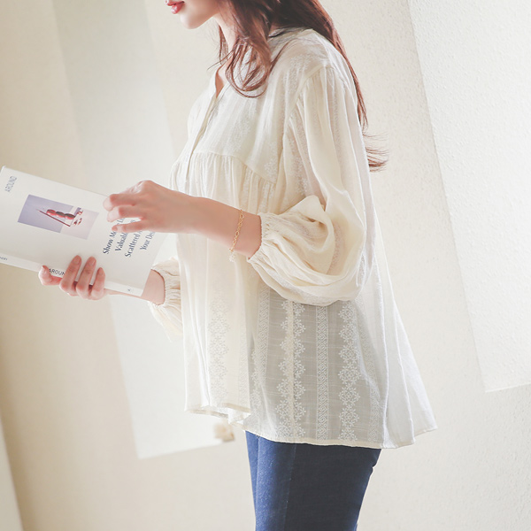 Snow-Flower Cotton Flared Blouse