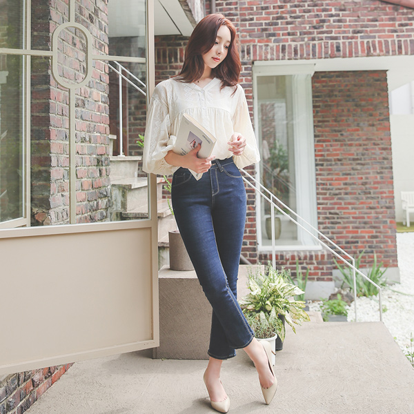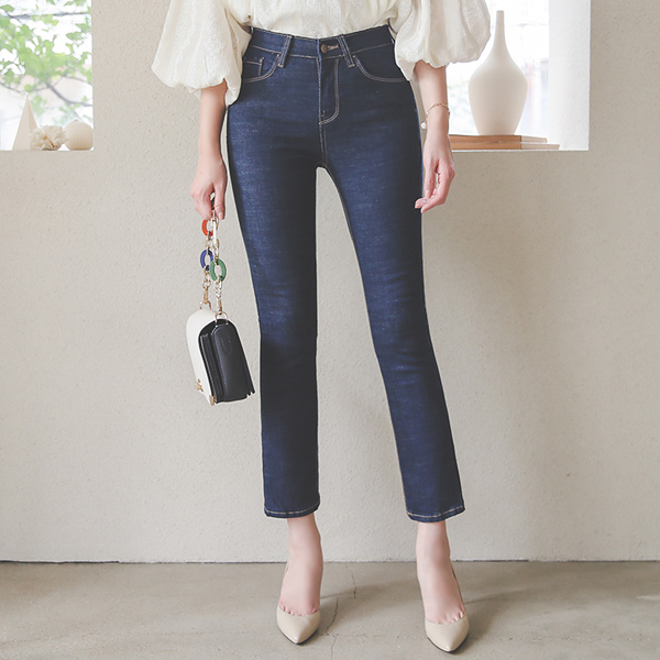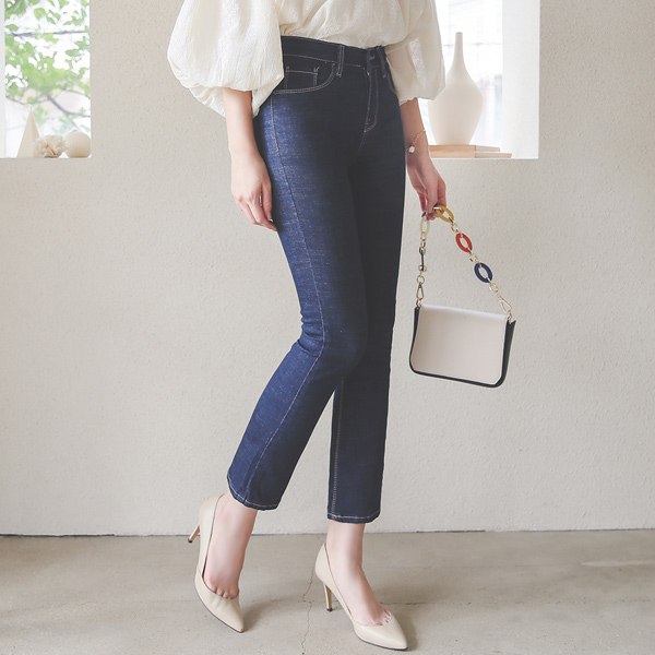 Stretchy-Waist Stitch Greige Denim Pants