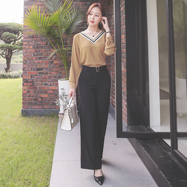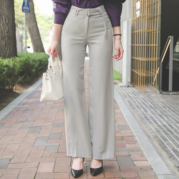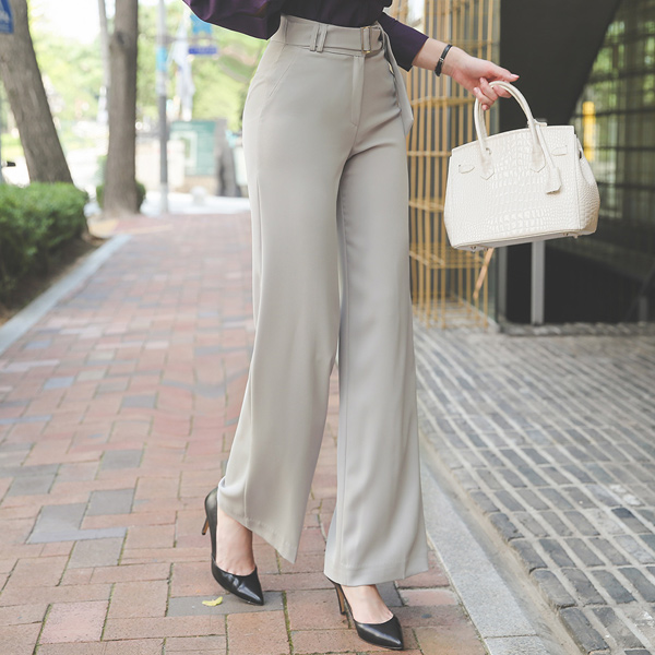 Square Buckle Belted Wide Long Slacks