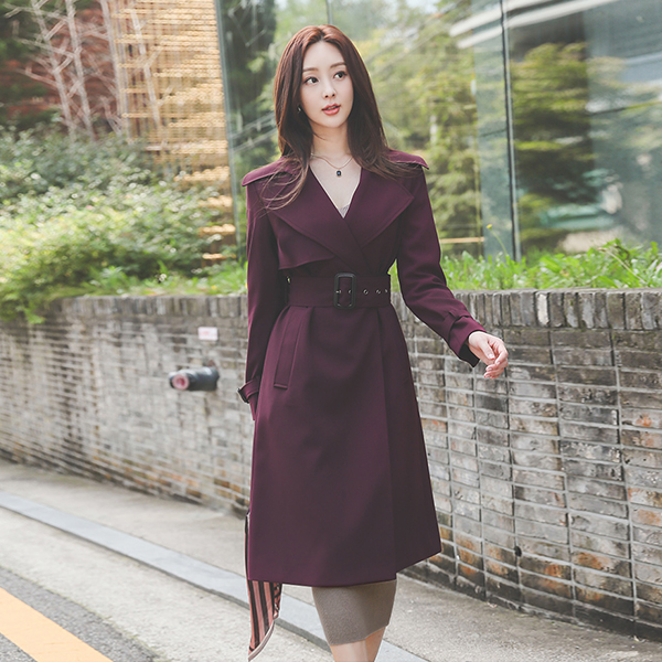 Wide Cape Collar Eyelet Belt Trench Coat