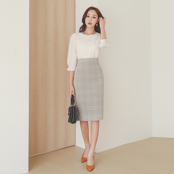 Stitch Check High-Waist H-line Skirt