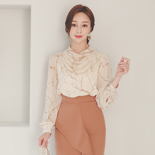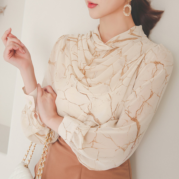 Marbling Skily Drape Cowl Neck Blouse