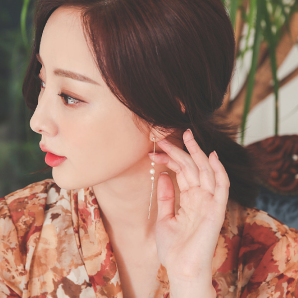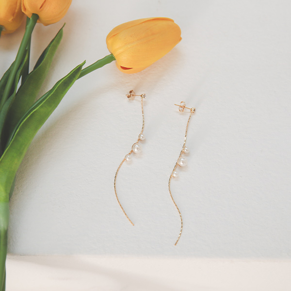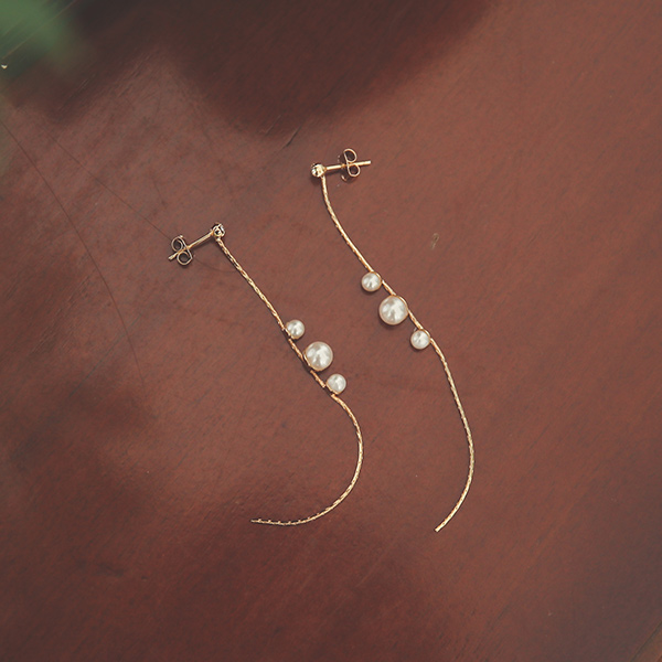 Pearl Ball Slim Gold Long Earring