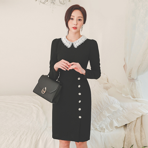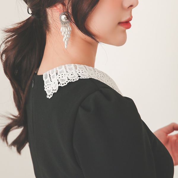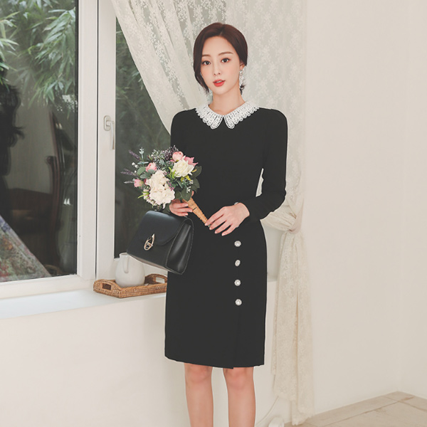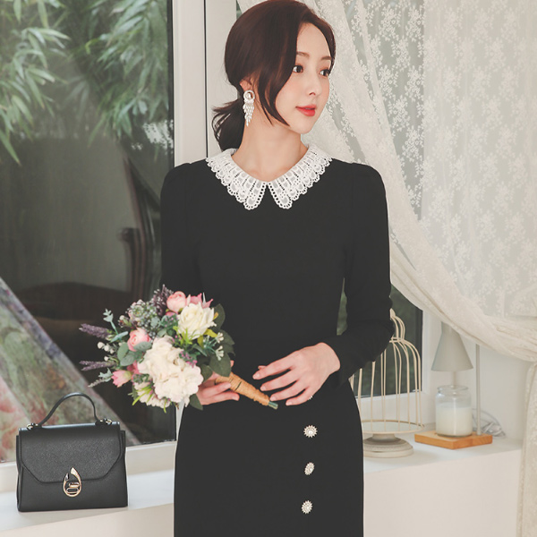 Embroidery Lace Collar Pearl Cubic Dress(fall)