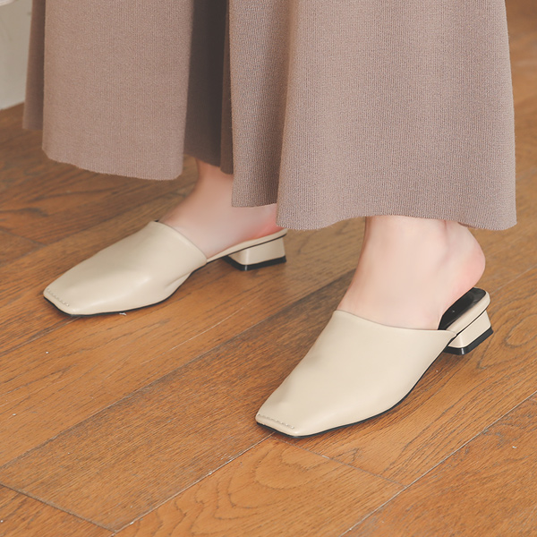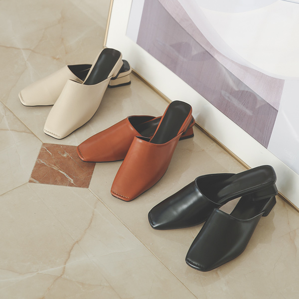 Square Stitch Leather Backless Loafer