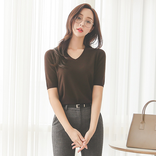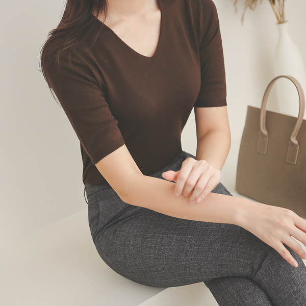 Basic Soft Biscos V-neck Short Sleeves Knit