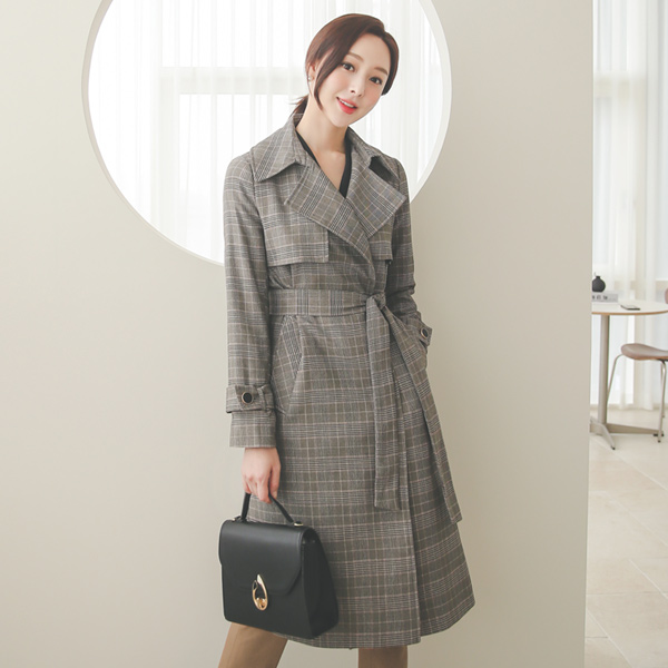Modern Glen Plaid Matte Button Belted Trench Coat