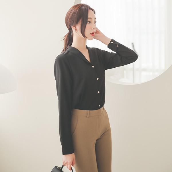 Classic Shawl Collar Pearl Button Blouse