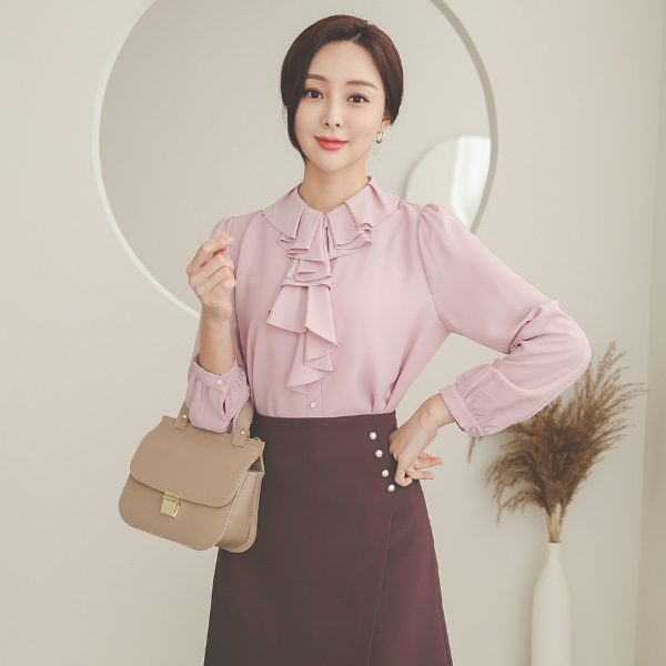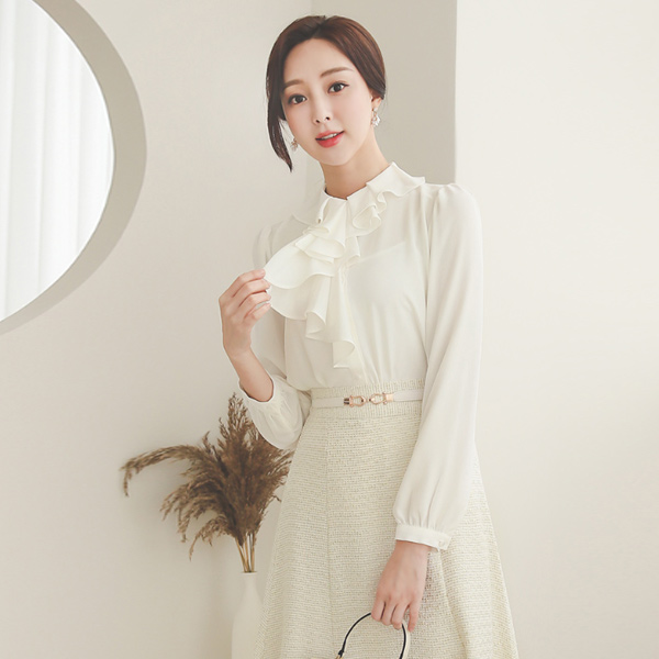 Unbalance Flounce Ruffle Collar Blouse