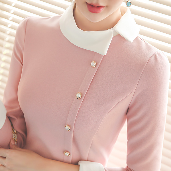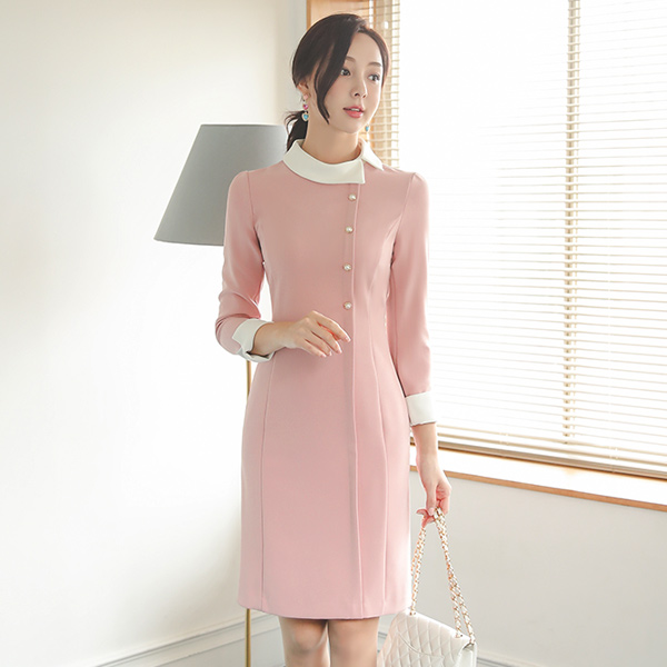 Unbalance Flat Collar Color Combination Side Pearl Span Dress