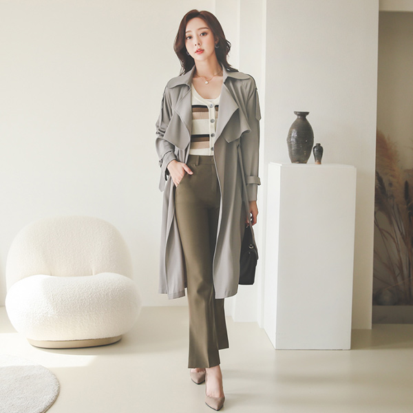 Skily Tencel String Belted Trench Coat