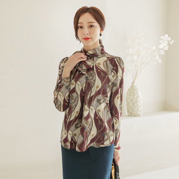 Satin Chain&Tassel Scarf Blouse