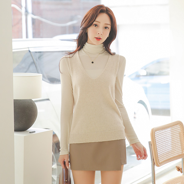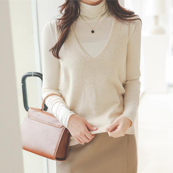 Whole Garment Fine Wool Deep V-neck Knit Vest