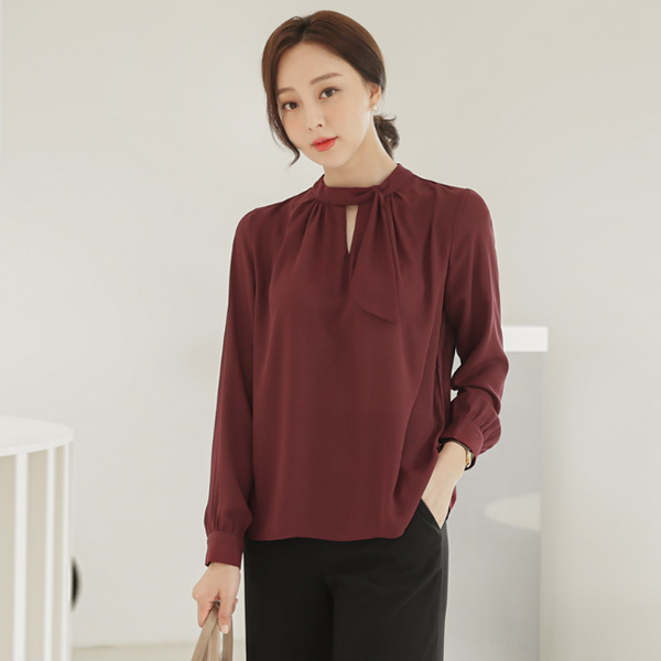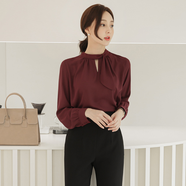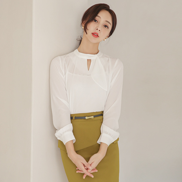 Unbalance Scarf-Neck Center Front Vent Blouse