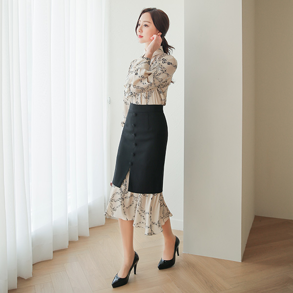 Skily Chain Printing Trimming Bean Button Skirt