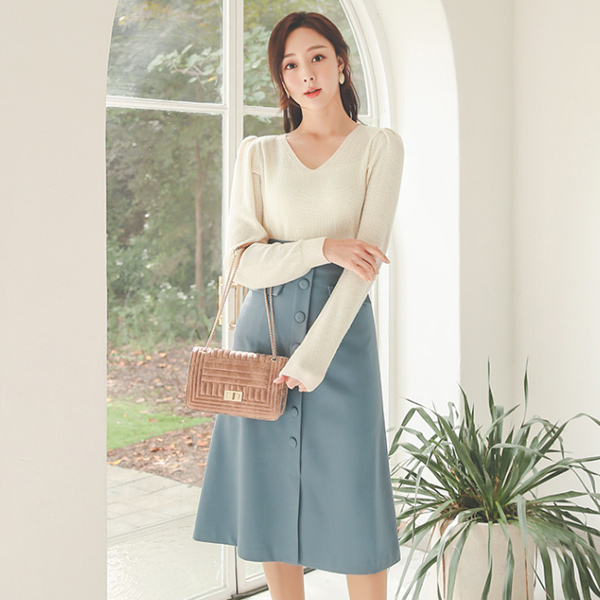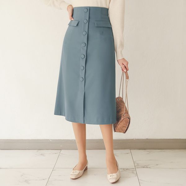High-Waist Bean Button Flap Pocket A-line Skirt