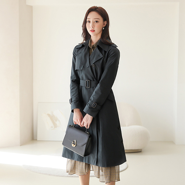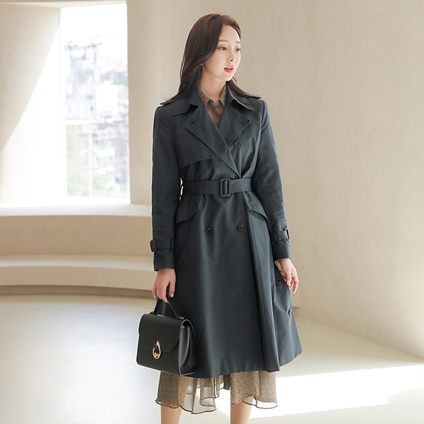 Lady Side Button Wide A-line Trench Coat