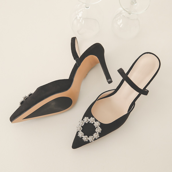 Flower Cubic Sling Backs&Stiletto Heels