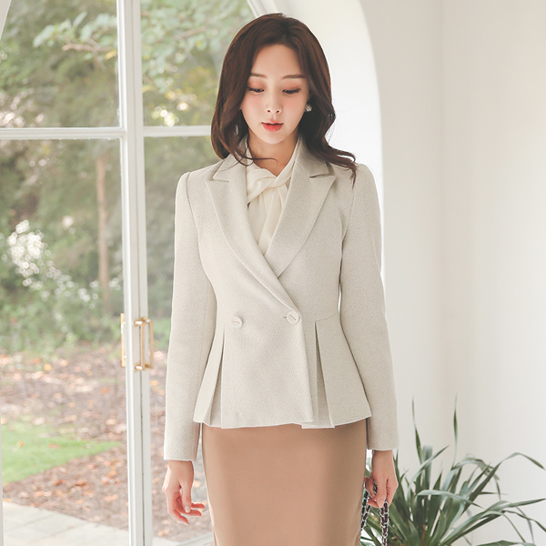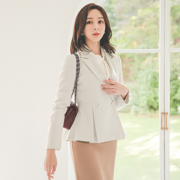 Classic Double-button Peplum Thread-mix Jacket