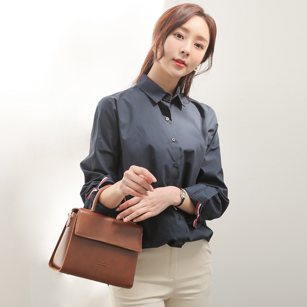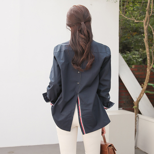 Back-Button Triple Color Combination Tapping Cotton Shirt