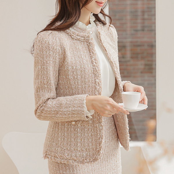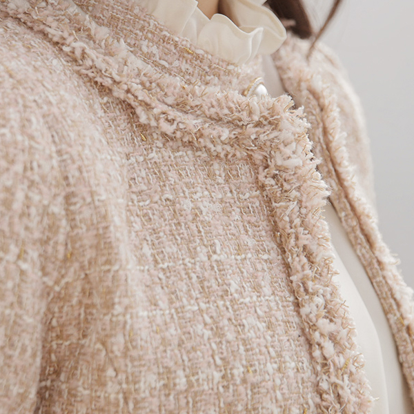 Rococo-Style Fringe Tweed Pocket Rounding Jacket