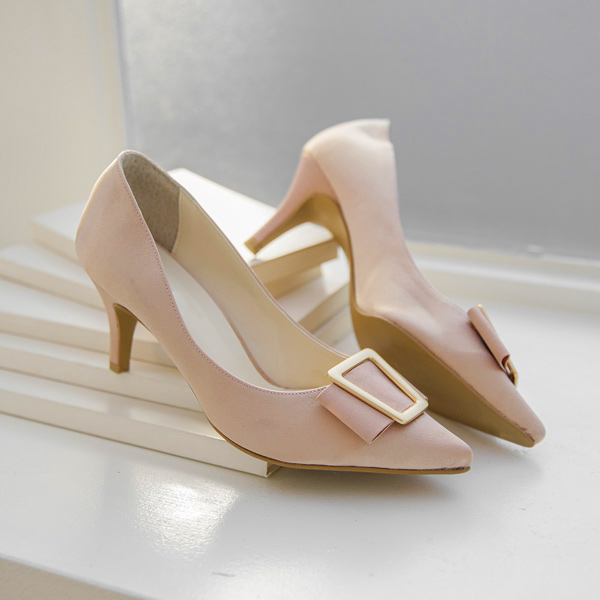 Gold Square Satin Ribbon Stiletto Heels
