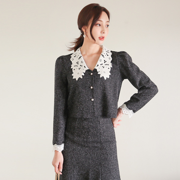 Lace Big Collar Tweed Two-piece SET