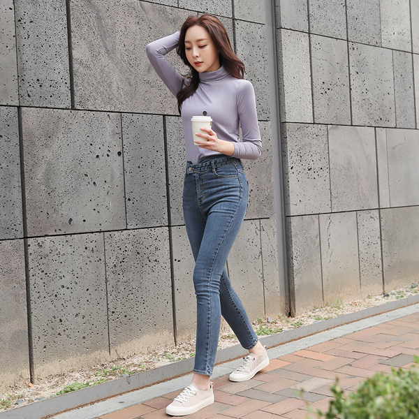 V-Cutting High-Waist Skinny Jeans