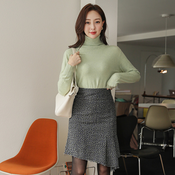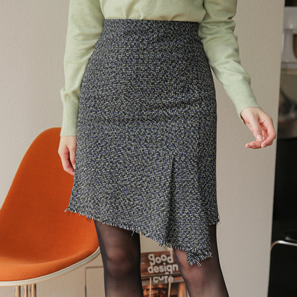 mix Fringe Tweed Unbalance Ruffle Skirt