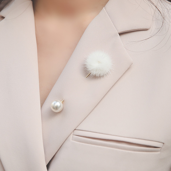 Blod Pearl Mink Fur Boutonnier Brooch