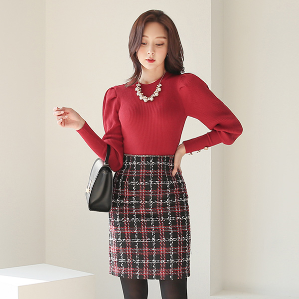 Braid Fringe Tweed Skirt