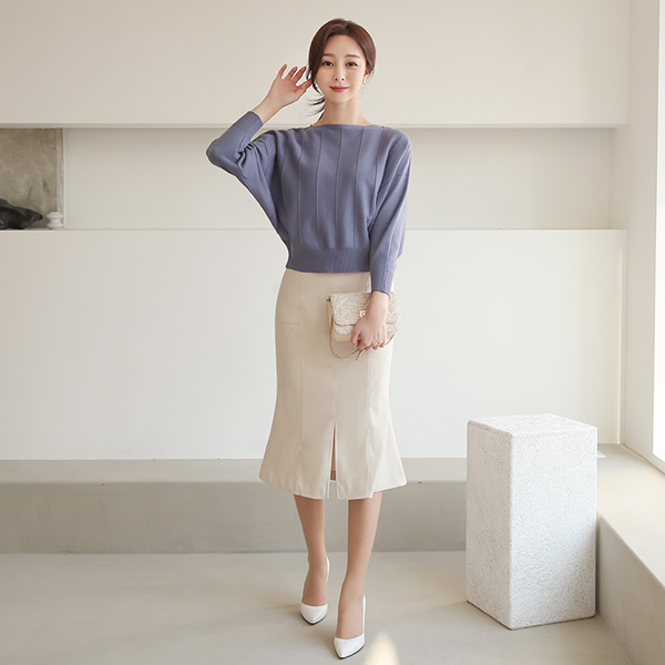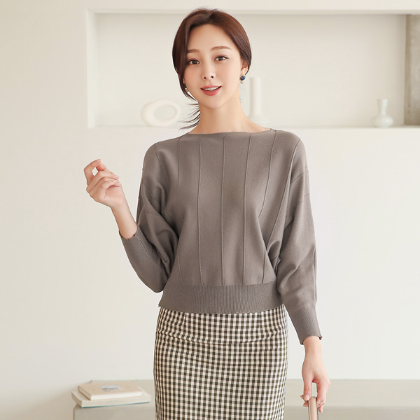 Biscos Wide Corduroy Boat Neck Batwing Sleeve Knit