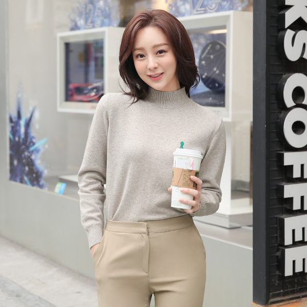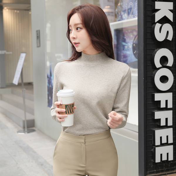 Biscos Simple Half-Turtleneck Knit T-shirt