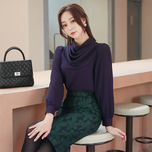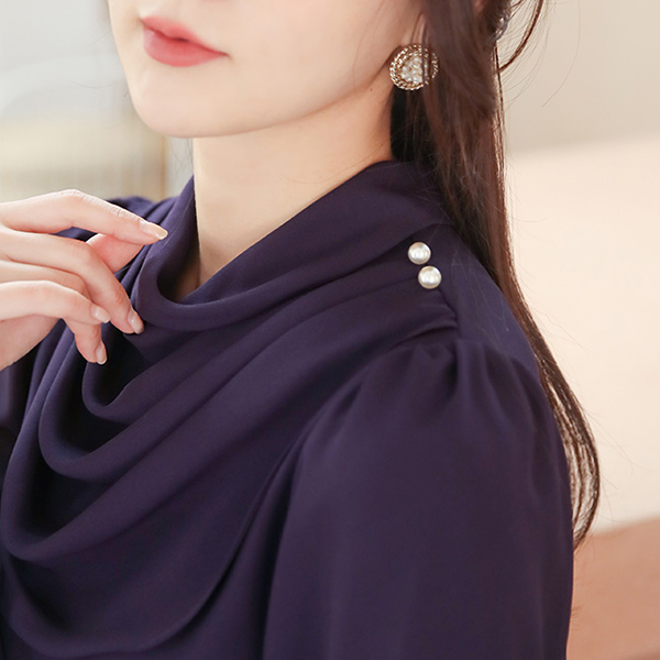 Shoulder Pearl Draping Cowl Neck Blouse
