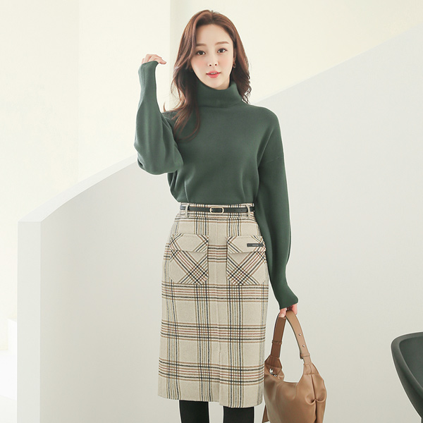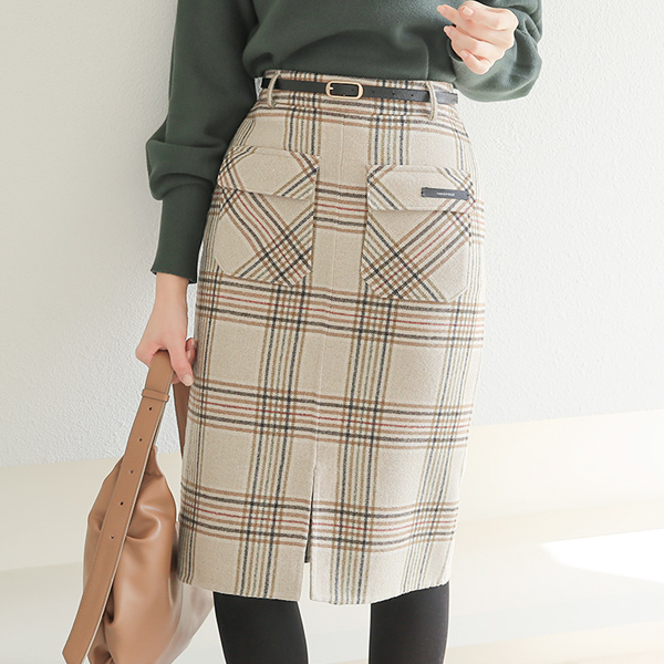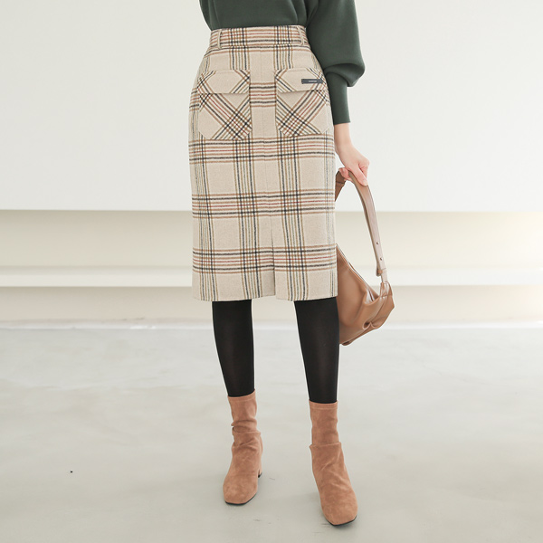 Double Flap Pocket Check Hand-Made Wool Skirt