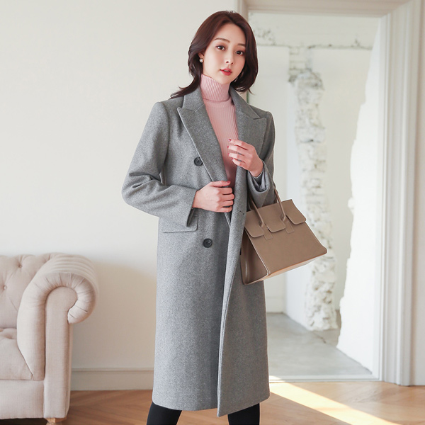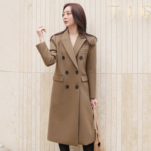 Peaked Collar Double-button Long Coat