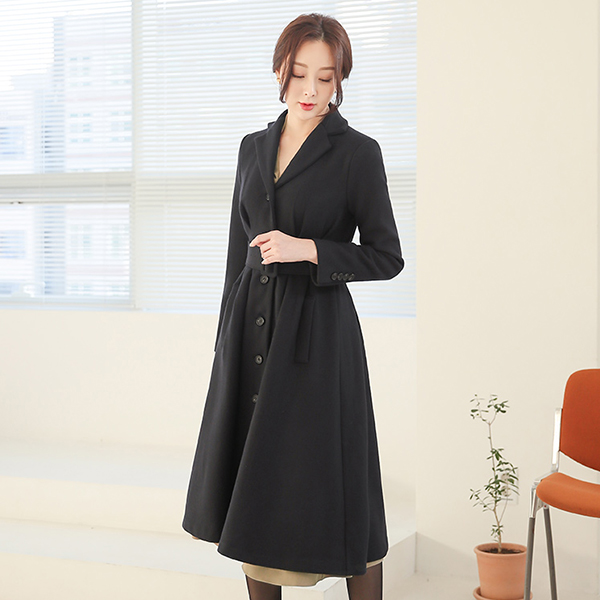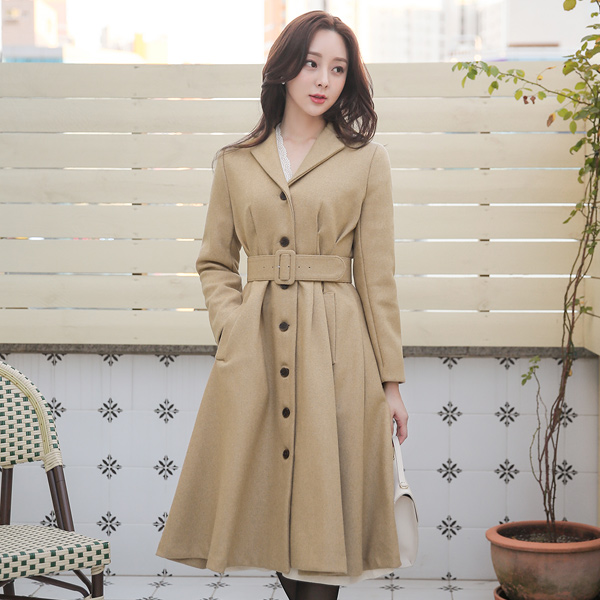 minimum Collar Pintuck A-line Wool Long Coat