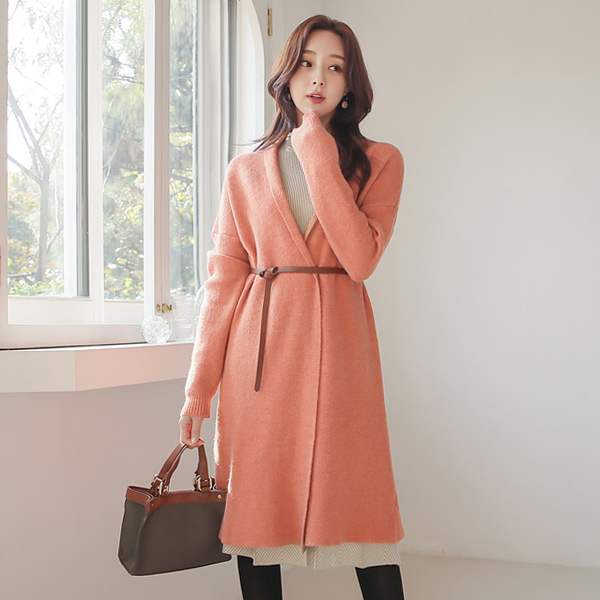 Mini Shawl Collar Mohair Wool Long Cardigan