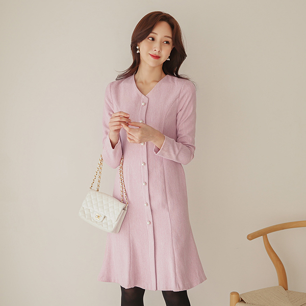 VNeck Cutting-line Pearl Flared Dress