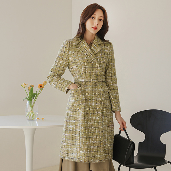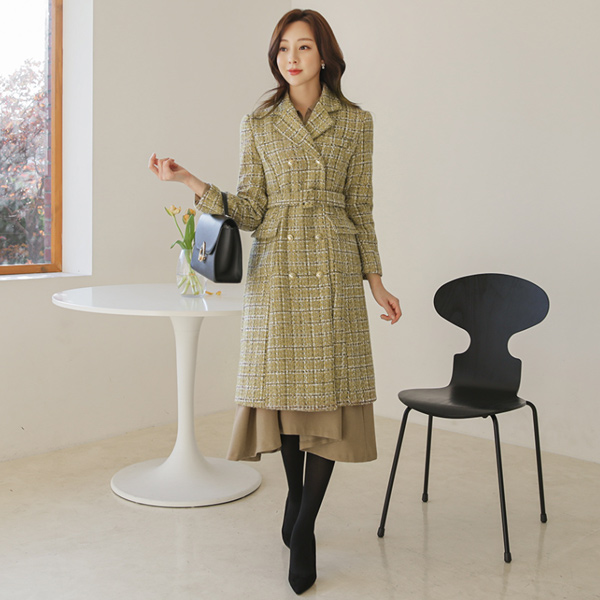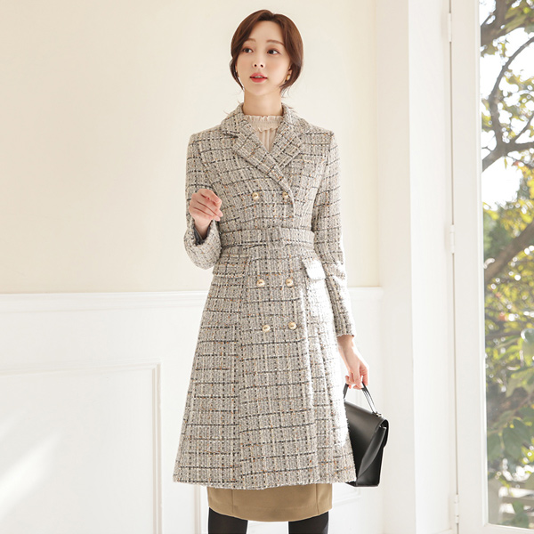 Double Gold Button Metallic Tweed Wool Coat