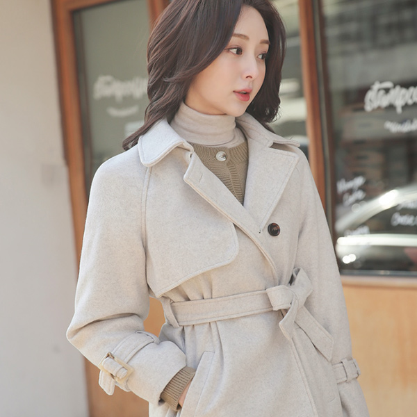 Soft Bokashi Wool Harp Trench Coat