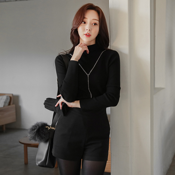 YLine Cubic Corduroy Funnel Neckline Knit T-shirt