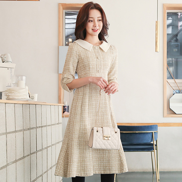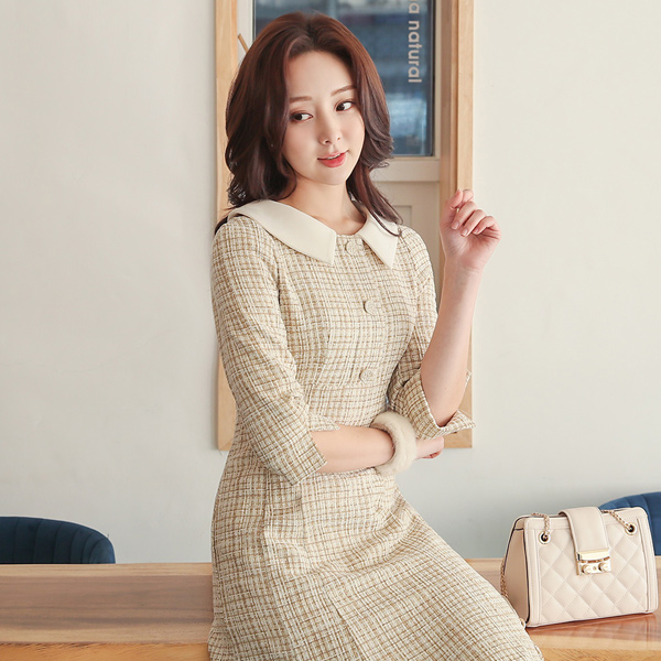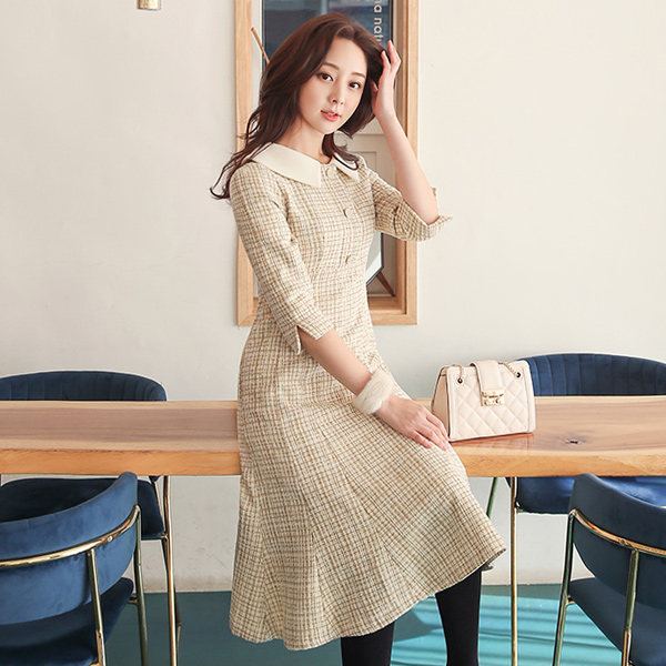 Flat Collar Velvet Tweed Button Mermaid Dress
